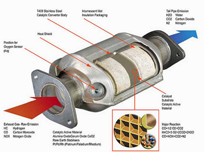 回收廢舊汽車催化轉化器更環(huán)保并可節(jié)約資源。如果廢料經(jīng)過妥善分類和制備,鉑、鈀和銠可以從廢催化劑中回收并重新用于制備新的催化劑。