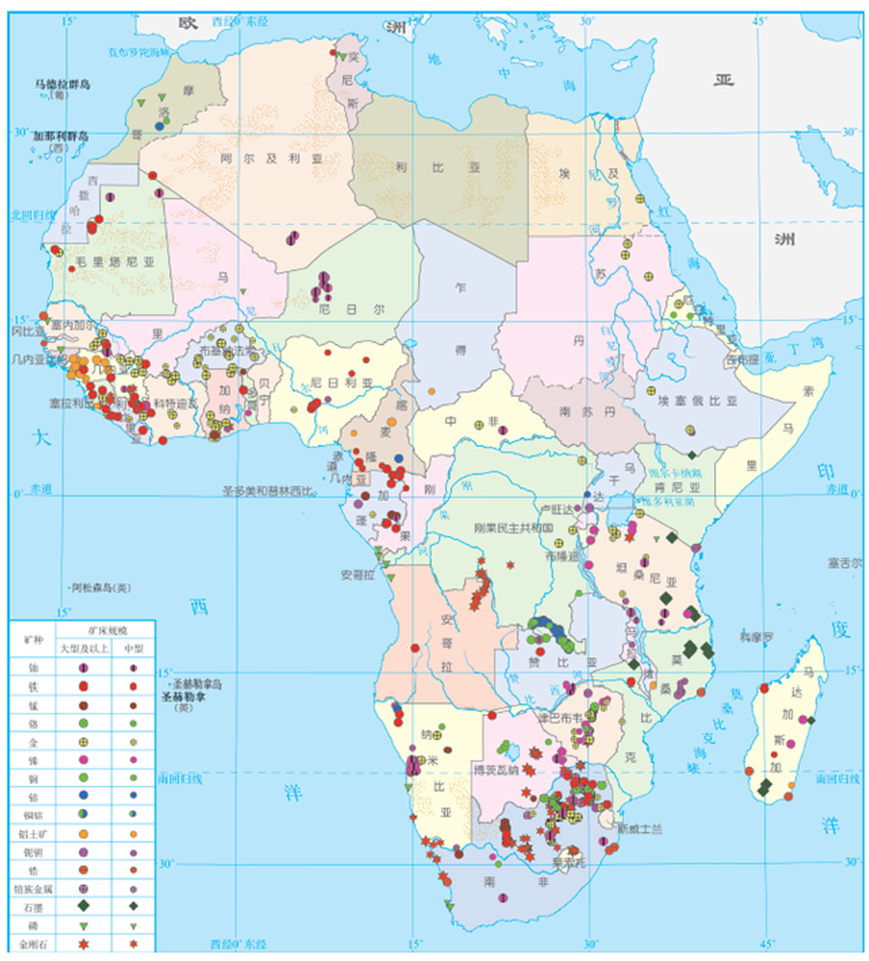 非洲大陸是世界最古老的大陸之一,經(jīng)歷了復(fù)雜的地質(zhì)構(gòu)造-巖漿活動(dòng)-成礦作用演化過程,成礦地質(zhì)條件優(yōu)越,礦產(chǎn)資源極為豐富,而且礦產(chǎn)種類齊全、儲(chǔ)量巨大,被稱為世界礦產(chǎn)資源的博物館,是世界著名的礦產(chǎn)資源富集地區(qū)之一。