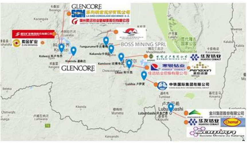 目前,中資在剛果(金)的主要項(xiàng)目包括:紫金礦業(yè)的Kamoa和Kolwezi銅礦、洛陽鉬業(yè)的Tenke Fungurume和Kisanfu銅鈷礦、五礦資源的Kinsevere銅礦、中國有色礦業(yè)集團(tuán)與剛果(金)國家礦業(yè)總公司的Deziwa礦山等。