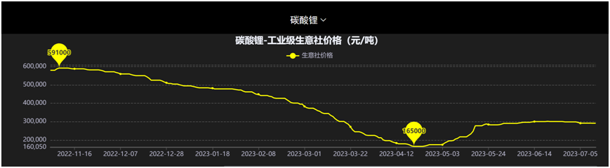 今年上半年,碳酸鋰從去年底的51萬元/噸跌至今年4月底的18萬元后;6%品位的鋰輝石中國(CIF)由年初時的每噸6000美元以上最低跌破今年4月的4000美元。五月份,碳酸鋰和鋰輝石中國(CIF)回暖,但也難現從前盛況!