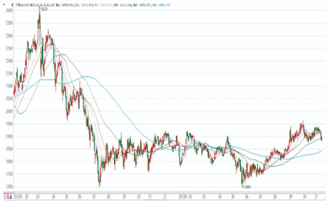一是鋁價呈現(xiàn)高位回調(diào)態(tài)勢。9月下旬鋁價大幅上漲, 但10月份鋁價未能延續(xù)上漲態(tài)勢,呈高位回調(diào)的走勢,10月初,由于下游消費轉(zhuǎn)弱,鋁呈累庫狀態(tài),因此節(jié)后鋁價走勢連續(xù)低迷,10月中旬,云南地區(qū)由于枯水季,部分電解鋁企業(yè)減產(chǎn),加之宏觀政策面有偏利好消息的支撐,使得鋁價有一定反彈。但是由于下游消費連續(xù)低迷,后續(xù)鋁價上行壓力仍較大。10月份滬鋁主力合約價格處于18741元/噸~19252元/噸之間,均價為18996元/噸,環(huán)比上升304元/噸,漲幅1.6%,同比上升767元/噸,漲幅4.2%。滬鋁主力合約價格走勢情況見圖4。