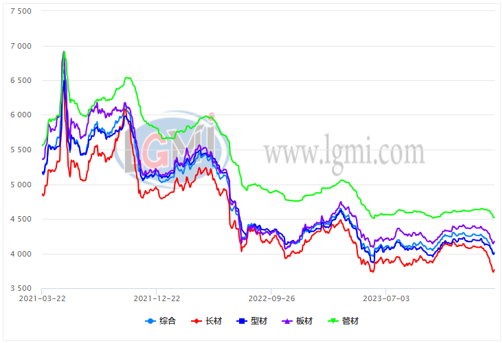 具體來看,蘭格鋼鐵長材絕對(duì)價(jià)格指數(shù)為3766元,較去年同期下降14.8%;蘭格鋼鐵型材絕對(duì)價(jià)格指數(shù)為3997元,較去年同期下降12.5%;蘭格鋼鐵板材絕對(duì)價(jià)格指數(shù)為4175元,較去年同期下降11.1%;蘭格鋼鐵管材絕對(duì)價(jià)格指數(shù)為4518元,較去年同期下降10.6%。