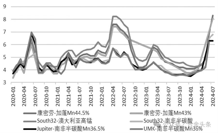 7月3日,康密勞8月對華錳礦報價公布,漲0.7美元至9美元/噸度,氧化礦再獲支撐,下半年需繼續跟蹤港口庫存變動、澳礦山發運恢復時間和其他非主流礦進口增量。