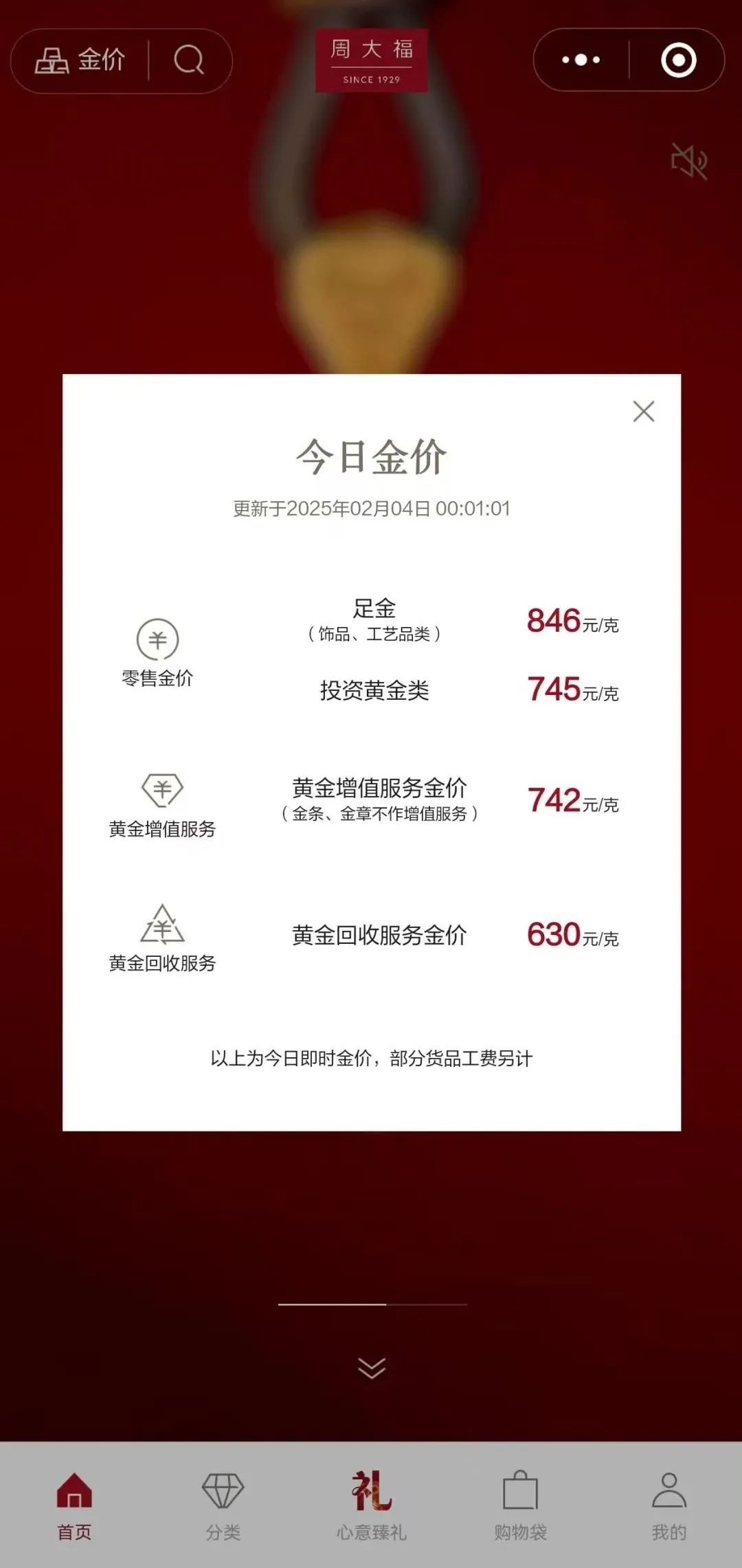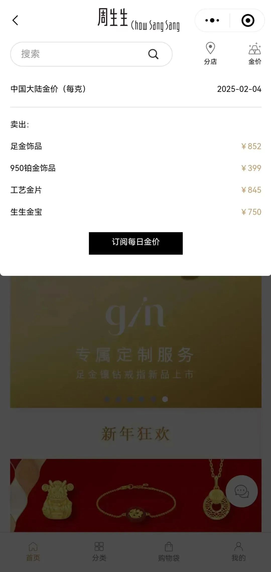 2月4日,周大福官網(wǎng)報(bào)出的足金飾品價(jià)格為846元/克,周生生報(bào)出的價(jià)格更是達(dá)到852元/克,均為品牌足金飾品售價(jià)的歷史高位。