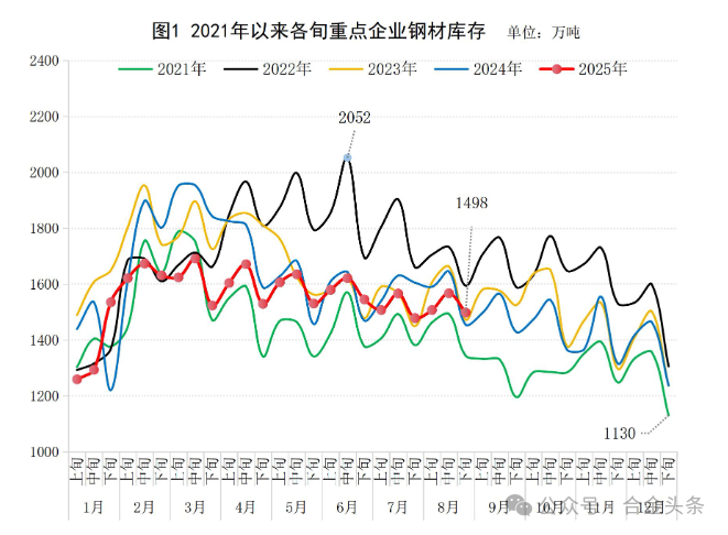 中鋼協(xié)發(fā)布2025年8月下旬重點(diǎn)企業(yè)鋼材庫(kù)存旬報(bào),2025年8月下旬,重點(diǎn)統(tǒng)計(jì)鋼鐵企業(yè)鋼材庫(kù)存量1498萬(wàn)噸,環(huán)比上一旬減少69萬(wàn)噸,下降4.4%;比年初增加261萬(wàn)噸,增長(zhǎng)21.1%;比上月同旬增加20萬(wàn)噸,增長(zhǎng)1.4%;比去年同旬增加44萬(wàn)噸,增長(zhǎng)3.0%,比前年同旬增加26萬(wàn)噸,增長(zhǎng)1.8%。